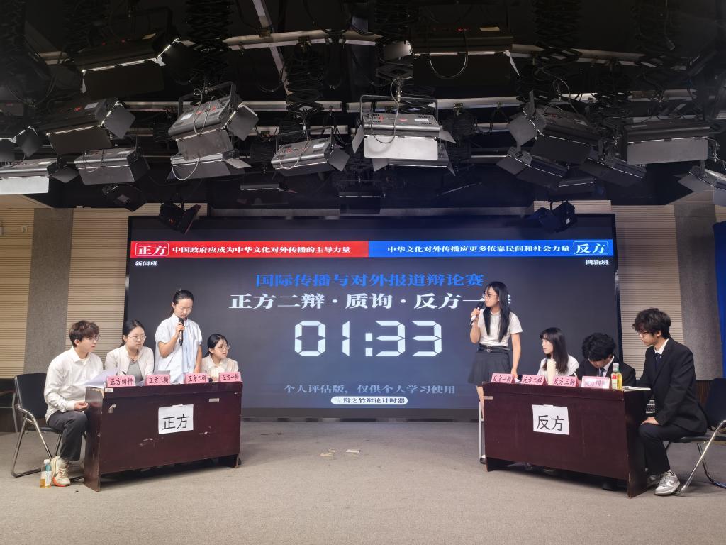 "抖音海外版TikTok的文化输出和孔子学院的全球布局,哪个更能有效传播中华文化?"5月25日晚,tyc86太阳集团2023级新闻班与2023级网络与新媒体班在卓越楼一楼演播大厅展开了一场关于中华文化国际传播路径的精彩辩论。本次比赛作为《国际传播与对外报道》课程的实践环节,吸引了两班80余名学生现场观摩。辩论围绕"中华文化国际传播应坚持政府主导还是民间力量为主"展开,正方(新闻班) 主张政府主导,认为国家层...