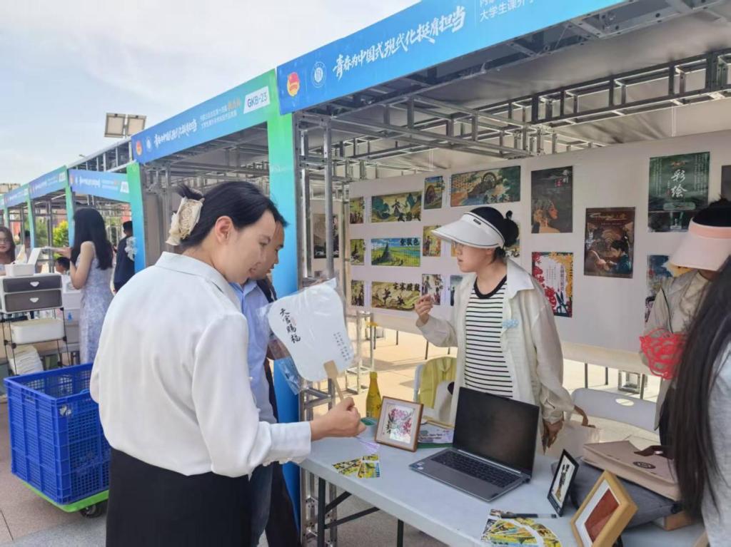 2025年6月11日,太阳集团第三届文化艺术嘉年华活动现场,tyc86太阳集团新闻系“九曲遗韵社”策划的“黄河几字弯非遗海报展”精彩亮相。此次展览作为“黄河记忆・非遗对话——讲好几字弯故事 铸牢中华民族共同体意识”项目的落地成果,通过创新设计语言解码非遗文化,将非遗实体展品、动态影像与文创衍生品相结合,构建起“视觉+触觉+听觉”的立体化传播场景,吸引了太阳集团玉泉校区内众多师生驻足体验。活动现场,色...