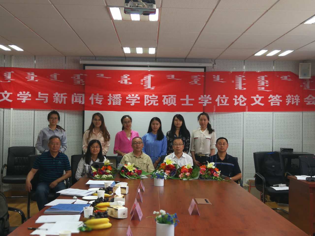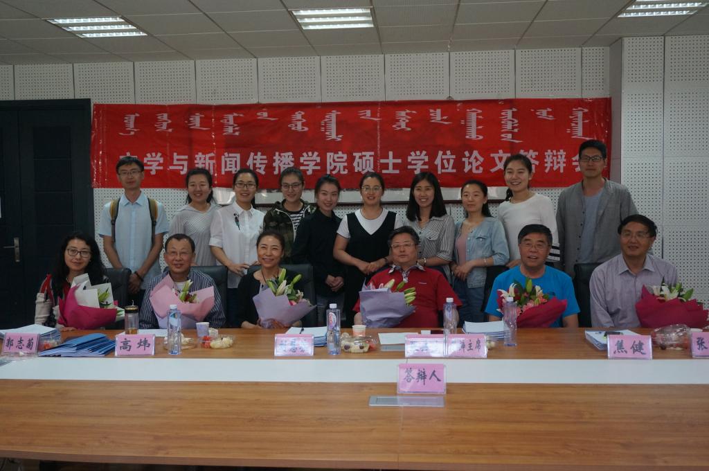 5月27日,2017届新闻与传播专业研究生毕业论文答辩在南校区如期举行。答辩共分4场,新华社内蒙古分社社长李仁虎、内蒙古广播电视台总编辑张兴茂、新华社内蒙古分社政文部主任汤计、内蒙古广播电视台新闻中心主任王虎全担任各组答辩委员会主席,光明日报驻内蒙古记者站站长高平、原中央人民广播电台宁波记者站站长焦健、自治区党委宣传部新闻处处长新娜、自治区党委宣传部企业处处长尤占永、内蒙古广播电视台节目制作中心主任刘慧芬、内蒙古日报社融媒体部主任郝斌,内蒙古广播电视台新闻综合频道总监白廷旭以及我院14名专业学位研究生导师担任答辩委员会委员。