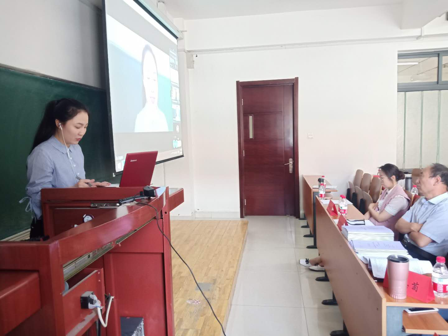 区别于在线参加答辩的学生,已经返校的2020届毕业生梁晨晨、冯华等九人则在线下教室中参与了本次线上答辩。“我在线下看你,别人在线上看你,你在线下看线上”张丽萍教授的话语生动总结出这种答辩方式的与众不同。