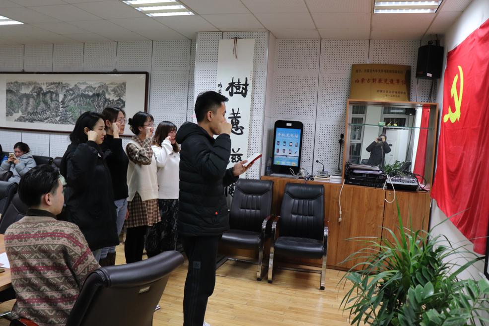紧接着,冯坤老师对6名申请发展为预备党员的同学与正式党员提出学习与工作要求,希望同学们在思想、学习、生活等方面更加严格要求自己,积极参加党组织活动,认真学习各项政策,对党组织分配的工作能够按时完成,不忘入党初心,牢记党员使命,发挥党员模范带头作用,要努力成为一名合格的共产党员。