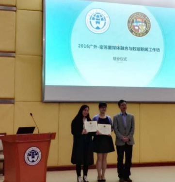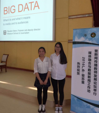 2016年12月12日,由广东外语外贸大学与美国密苏里大学主办的“2016广外—密苏里媒体融合与数据新闻工作坊”在广州拉开帷幕,共260多名师生及专家学者齐聚广外广州大学城校区,其中70多位来自国内外其他高校及传媒业界。在为期5天的活动中对数据新闻及数据可视化应用领域、地理图示应用、新闻传播学科在媒介融合领域的未来发展方向进行探讨。我院新闻传播实验中心主任马强老师及2016级新闻与传播专业硕士研究生王玉杰、李旖参与了此次活动。
