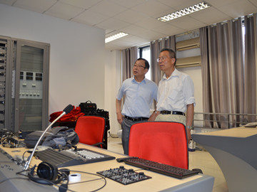 教授的陪同下参观了报纸编辑实验室、数字出版实验室、数码影像编辑实验室和新闻演播大厅,并与同学们亲切交流。