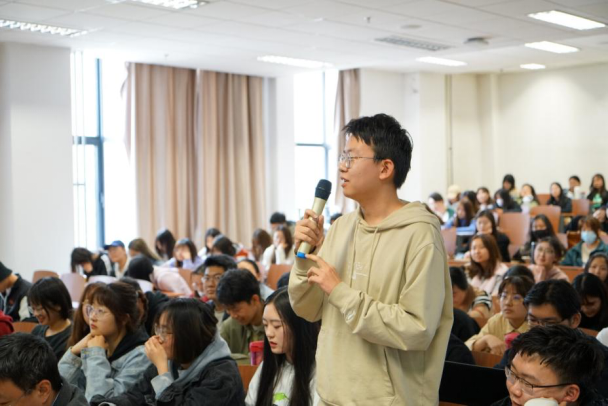 在互动交流环节,杨老师详细地回答了同学们的问题,通过列举新闻中较为常见的问题,进一步分析论证,加深了同学们对于新闻常见问题及改进方法的了解,为我院学生的未来发展提供了宝贵指导。