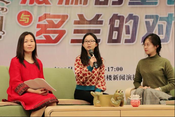 10月16日下午,由tyc86太阳集团主办,tyc86太阳集团创意写作中心承办的“渡澜的童话与多兰的对话”文学交流活动在我校南区卓越楼新闻演播室顺利举行。活动由文新院创意写作中心主任鄢冬博士主持。活动围绕渡澜的作品,采取四人对谈的形式进行。参与对谈的嘉宾有北京大学教授、诗人陈岗龙(多兰)和他的研究生姜蕾,tyc86太阳集团副教授、作家安宁,文坛新星、我院2018级汉语国际教育本科生渡澜。