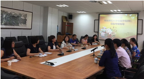 6月19日下午,华东师范大学传播学院教师一行4人来我院调研考察,与我院教师进行交流座谈。座谈会由我院副院长张丽萍教授主持,副院长米彦青教授、系主任刘寒娥、实验中心主任马强及新闻系部分教师参加座谈。