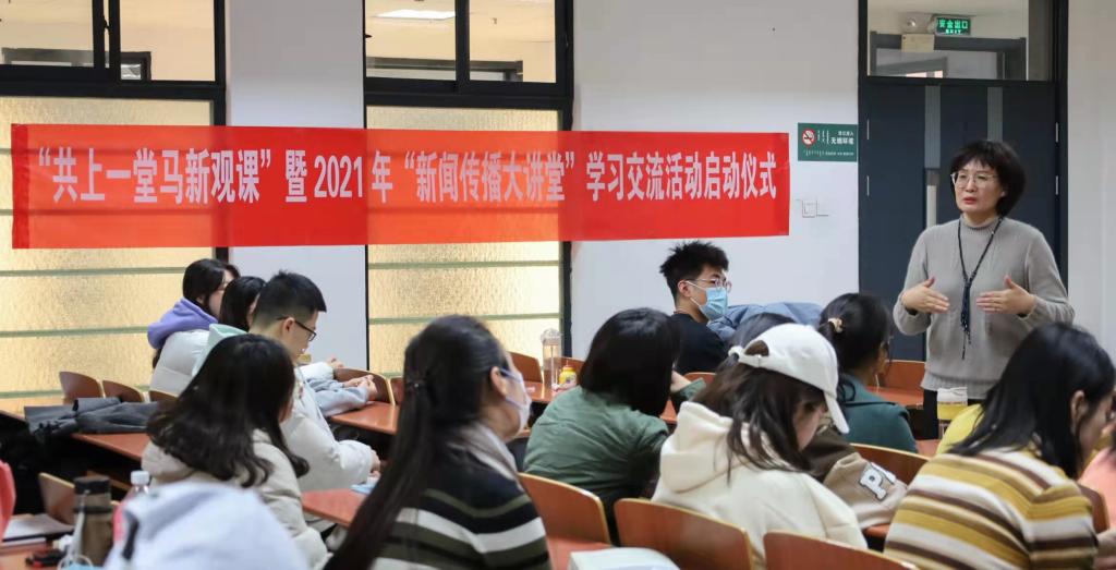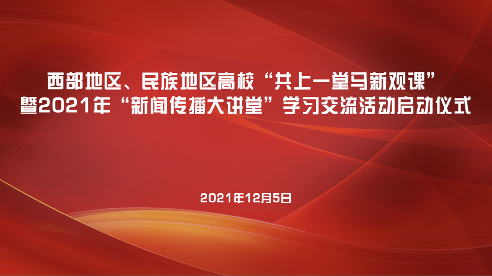 为深入贯彻落实习近平总书记最新重要讲话精神,全面落实立德树人根本任务,加快推进新文科建设,培养卓越新闻传播后备人才,加强西部地区、民族地区高校新闻传播院系协同育人机制建设,共享新闻传播优质教育资源,12月5日下午,我院百余名师生在线参加了西部地区、民族地区高校“共上一堂马新观课”暨2021年“新闻传播大讲堂”学习交流活动启动仪式。集体上了一堂高质量的马新观大课、课程思政大课和专业大课。