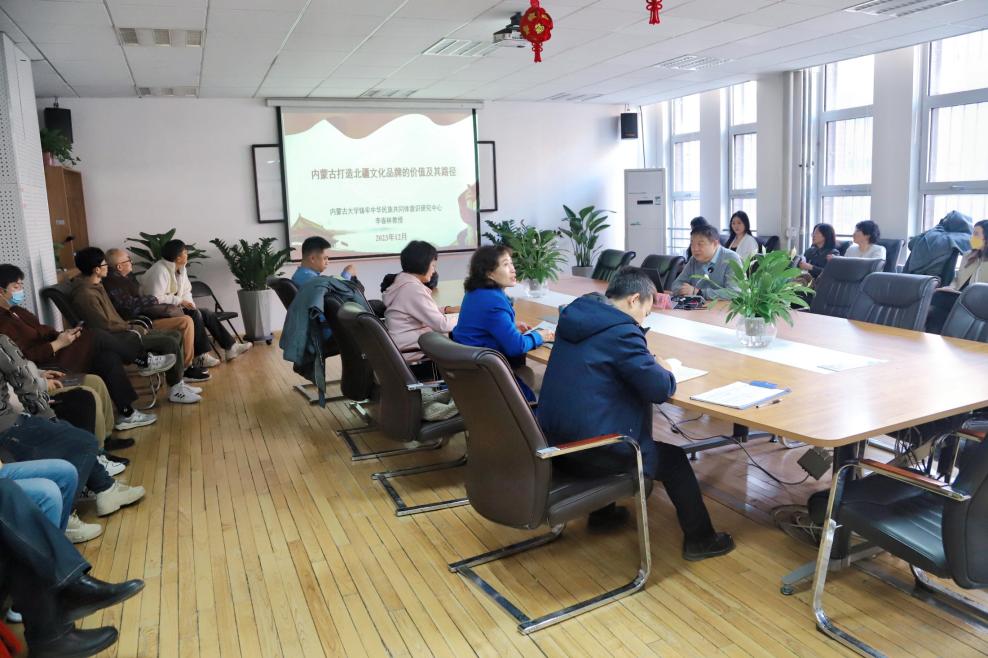 李春林教授为老师们介绍了内蒙古打造北疆文化品牌的价值及其路径,强调打造北疆文化品牌是“担当文化使命,为建设中华民族现代文明做贡献”,是铸牢中华民族共同体意识、构筑中华民族共有精神家园的需要;是在中国式现代化建设中“创新路、进中游”的需要;是筑牢祖国北疆安全稳定屏障的需要。