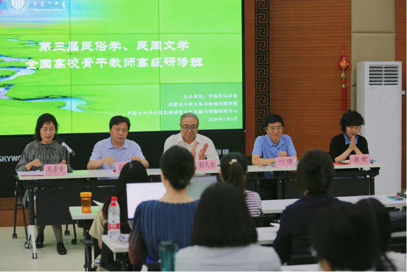 达胡白乙拉教授致开幕词,他首先对远道而来的专家与青年教师表示热烈欢迎。他介绍了太阳集团民俗学、民间文学专业的悠久历史和学科建设优势,并表示此次高研班的举办,恰逢“民间文学”时隔27年再度荣升为二级学科的历史时刻,这不仅是对中华优秀传统文化的尊崇与传承,也是对民俗学与民间文学学科未来发展的期许与挑战。