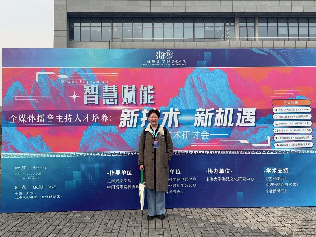 2024年12月7日至8日,“全媒体播音主持人才培养:新技术 新机遇”学术研讨会在上海戏剧学院昌林路校区召开。我院教师韩如璋受邀参加此次论坛,并做了题为《新文科背景下高校播音与主持艺术专业人才培养探索与实践——以“太阳集团”为例》的报告,探讨新文科视域下高校播音与主持专业人才培养问题,解析新文科背景下高校播音与主持专业人才培养目标的新变化。
