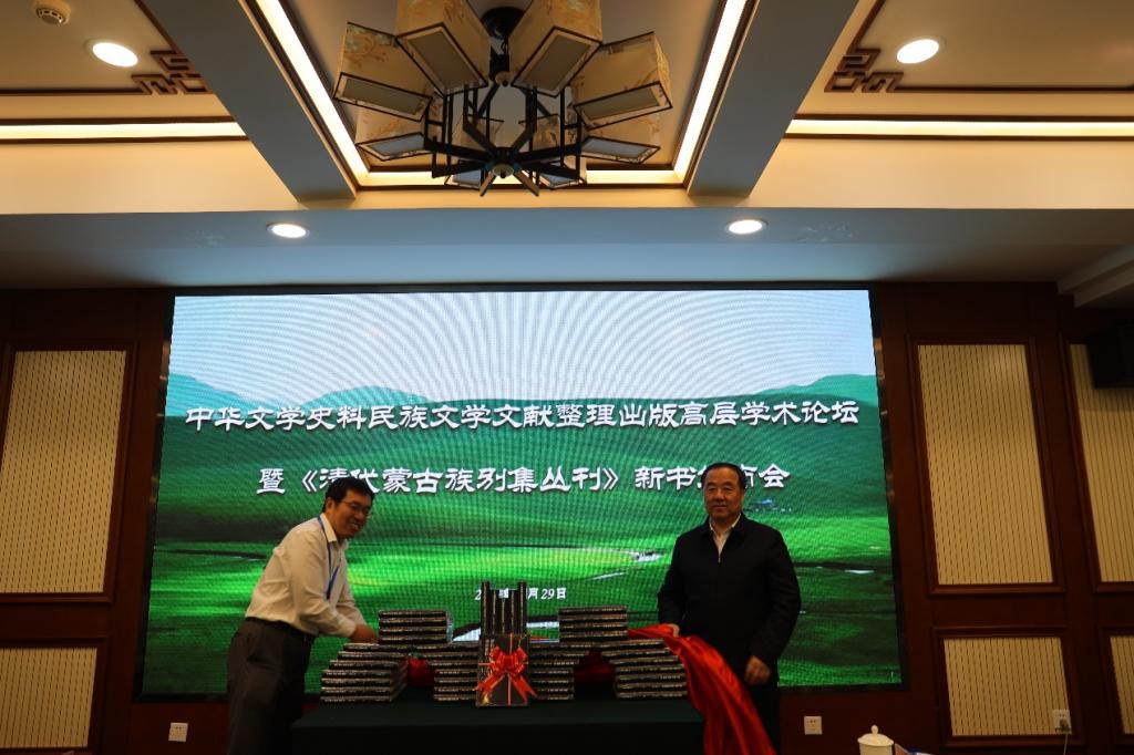 5月29日上午,由我院米彦青教授主编的《清代蒙古族别集丛刊》(以下简称《丛刊》)新书发布会暨民族文学文献整理出版高层学术论坛在呼和浩特召开。该套丛书是米彦青主持的国家社会科学基金重大招标项目“元明清蒙汉文学交融文献整理与研究”的阶段性成果。清代蒙古族有诗文创作者近百位,其中五十四位有完整的别集存世。《丛刊》共40册,刊印选书以藏于国家图书馆的八十七种为底本,校以其它图书馆藏本。其中四十二种未曾面世,内含孤本二十二种。这是蒙汉文学交融的典型文献,也是中华民族文学书写的经典性篇章。太阳集团党委书记刘志彧、副校长额尔很巴雅尔、国家图书馆出版社社长魏崇出席会议并致辞。