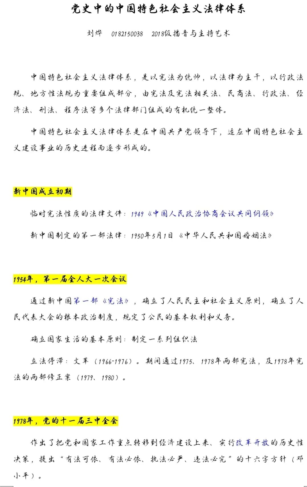2018级播音与主持艺术专业团支部以“线上学习会”的形式,组织支部团员了解与学习中国特色社会主义法律体系,同学们围绕中国特色社会主义宪法的发展历程进行了深入地探讨。其中,刘烨同学对宪法的发展历程进行了详细介绍。