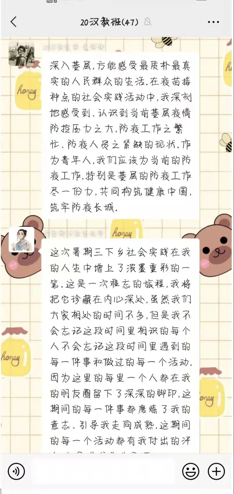 习近平总书记提到:“新时代的中国青年要增强志气、骨气、底气,锤炼过硬本领,学有所成,学以致用,善于将所学知识用于实际行动中。”2020级汉语国际教育专业团支部以"请党放心,强国有我"为主题进行了学习讨论。同学们在交流过程中充分表达了"请党放心,强国有我"的赤诚初心和"青春建功、永跟党走"的坚定信念,也表达了对党百岁生日的祝福。