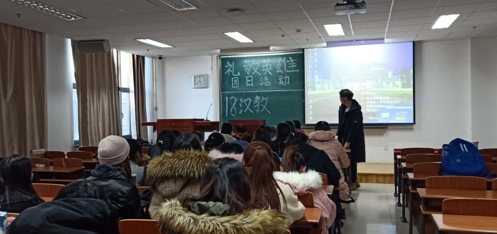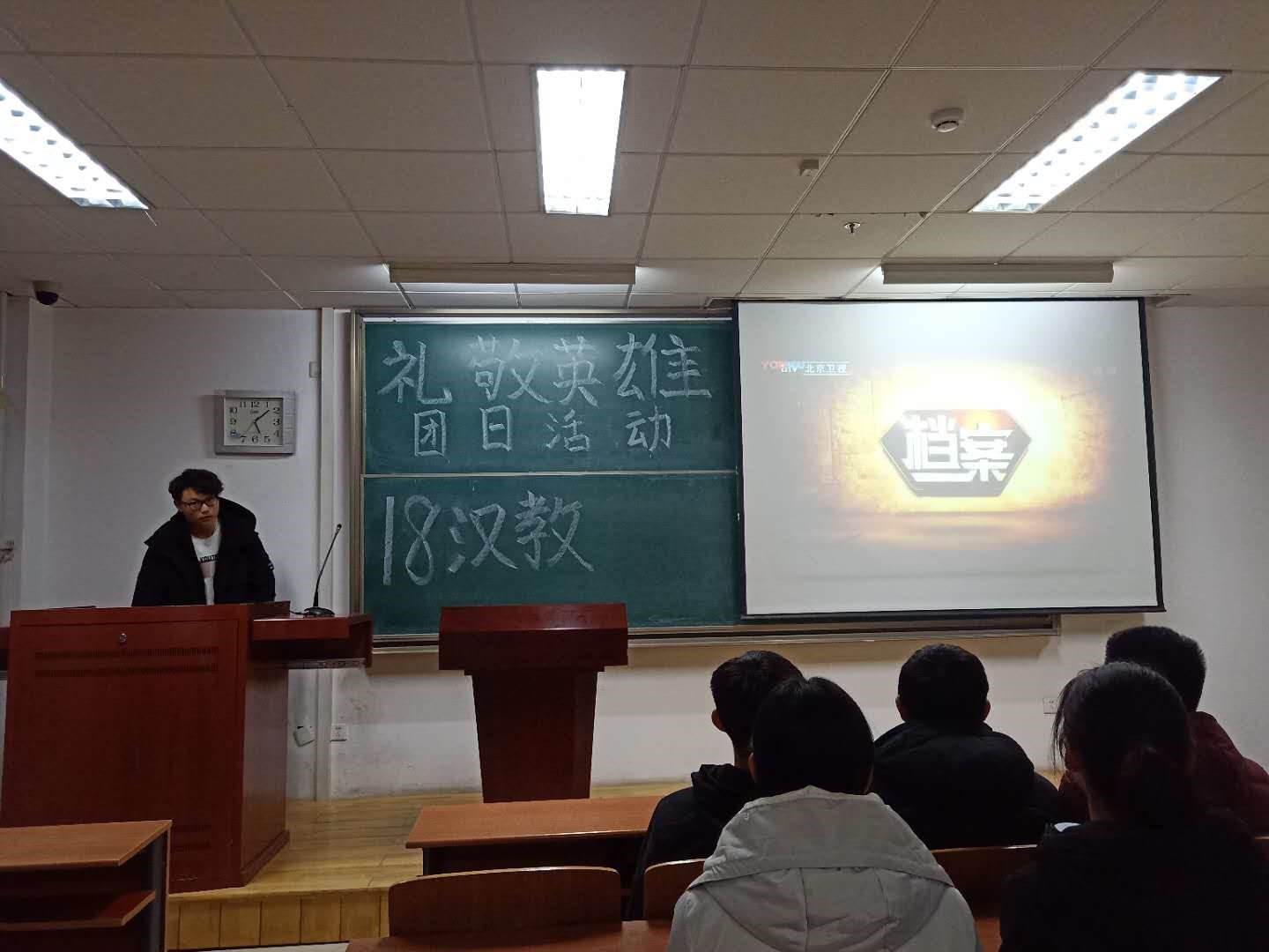 12月25日下午16点40分,我院2018级汉语国际教育班在主楼0309教室举办了“我的肩膀——能挑多重的担子”礼敬英雄系列活动,本次活动以观看纪录片《档案》的形式开展。在班长做了简单的解说过后,纪录片开始放映。