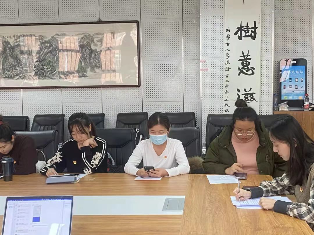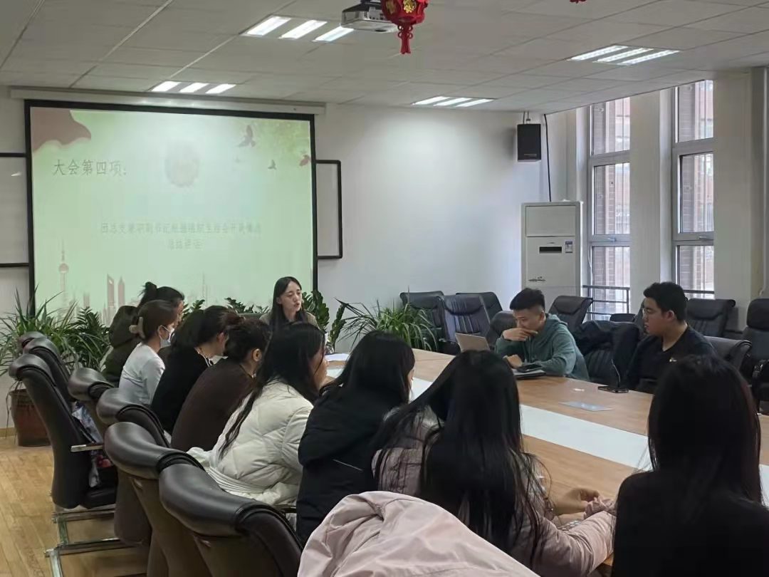 她表示:团总支高度重视以主题教育引导青年学生,不断增强基层团组织的凝聚力和活力。我院先后组织各团支部积极举办爱国主义与民族团结主题团日活动,开展习近平总书记“七一”重要讲话精神和党的十九届六中全会精神专题学习会。在前段时间各支部开展的“学党史、强信念、跟党走”专题组织生活会中,支部团员重点学习4个必学篇目,分别以宿舍为单位成立团小组,确保党史学习教育覆盖到每一个团支部、每一位团员。随后,她也指出团总支与各支部在工作交流上应加强联系沟通,团支部工作流程的规范性和理论学习的积极性还有待提高。并结合实际情况提出相应的解决办法。