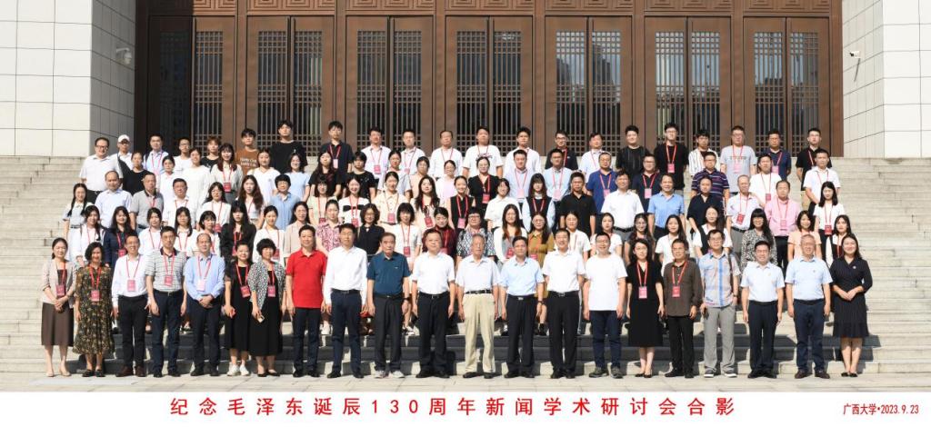 9月23日,由教育部社会科学委员会语言文学、新闻传播学和艺术学学部和广西大学共同主办、广西大学新闻与传播学院承办的“纪念毛泽东诞辰130周年学术新闻研讨会”在广西大学举行。我院2022级传播学硕士研究生翟培旺参加了本次学术研讨会。本次会议设大会主旨报告环节及五场分论坛,会议吸引了全国50多所高校、研究机构和媒体单位的130余名专家学者、硕博士研究生参加。
