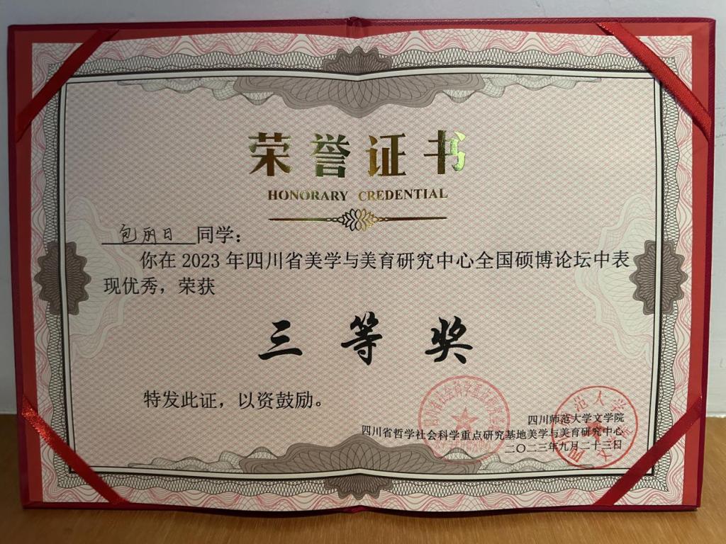 9月23日,由四川师范大学文学院、四川省哲学社会科学重点研究基地美学与美育研究中心共同主办、中华诗歌研究院协办的“四川省美学与美育研究中心2023年全国硕博论坛”在四川师范大学举行。据悉,本届论坛共收到来自北京大学、清华大学、复旦大学、首都师范大学、武汉大学、四川大学、南京大学、山西大学、太阳集团、四川师范大学等全国五十余所高校的百余篇论文,选取三十篇优秀论文进行现场报告,我院2021级艺术学理论专业研究生包丽日的文章顺利入选,受邀参与此次学术论坛。