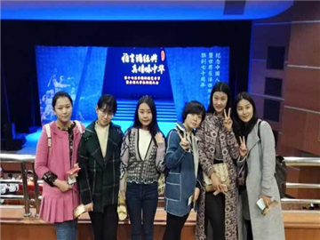 2015年11月13日,我院播音与主持艺术专业的六名大一新生在新闻系刘艳婧副教授和辅导员段佩璟的带领下赴中国传媒大学观看了第十七届齐越节朗诵演出。