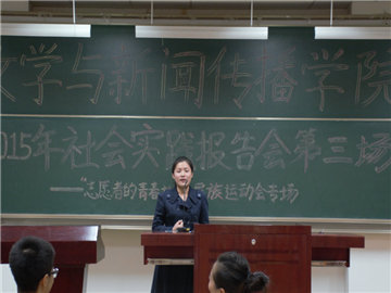 学院为了弘扬“奉献、友爱、互助、进步”的志愿精神,全面展示参与全国少数民族运动会志愿服务优秀志愿者的风采,并从他们的实践经历中汲取成果和经验,引导和促进广大学生树立“实践出真知”的理念,提升同学们的实践活动能力和水平,使其更深入地体会社会实践对大学生成长的促进作用,为今后的学习生活树立目标,我院于2015年10月28日在主楼DF0201举办了社会实践报告会第三场“志愿者的青春故事”民族运动会志愿者报告会专场,报告会上由四位具有代表性的优秀志愿者与同学们分享志愿者的实践故事和志愿服务过程中的收获。