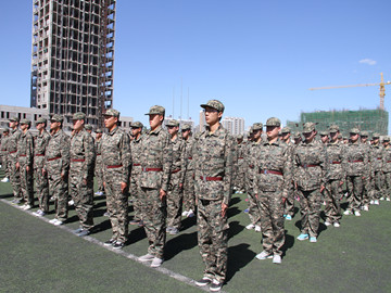 会前,学院2014级新生以统一的着装、饱满的热情井然有序的在操场上期待着教官的到来。伴随着响亮的口号声,教官们踏着整齐的步伐走进操场,见面会正式开始。
