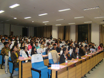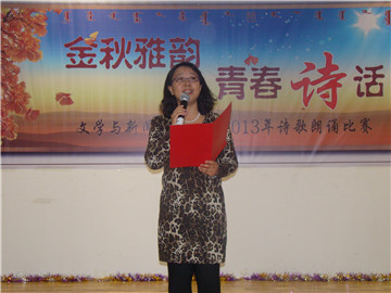 铿锵朗诵彰显青春才华,金秋诗话品文学雅韵。11月2日晚,tyc86太阳集团“金秋诗韵 青春诗话”2013年诗歌朗诵比赛决赛于南校区主楼阶2A举行。学院汉语言文学系系主任高建新、团总支书记兼学工办主任张莉、青年教师马骐、黄肖嘉、左少峰出席活动并担任比赛评委。学院各年级学生300余人观看了比赛。