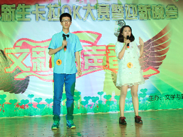 活动在由表演嘉宾带来的诗朗诵《青春之歌》中正式开始,时而温婉挚真、时而激情澎湃、时而娓娓交流、时而豪情满怀的朗诵,表达了学院全体师生对于全体2013级新同学的热烈欢迎与美好祝愿。1号选手武泽宇、3号选手秦嘉茂的演唱现场感染力十足,震撼全场,赢得了现场观众的阵阵喝彩;来自汉语国际教育班的5号ENC组合更是活力四射,载歌载舞;9号新闻学专业的王藤、和汉语言文学专业苏醒组合甜蜜对唱《只对你有感觉》;12号陈甲科一曲《十年》,深情款款,打动了在场每一位观众的心,赢得了阵阵掌声。同样,表演嘉宾韩文升、付迪、乌哈娜等现场助兴,为现场观众带来情景魔术、舞蹈、歌曲等形式多样的表演,为本次活动再添亮点。