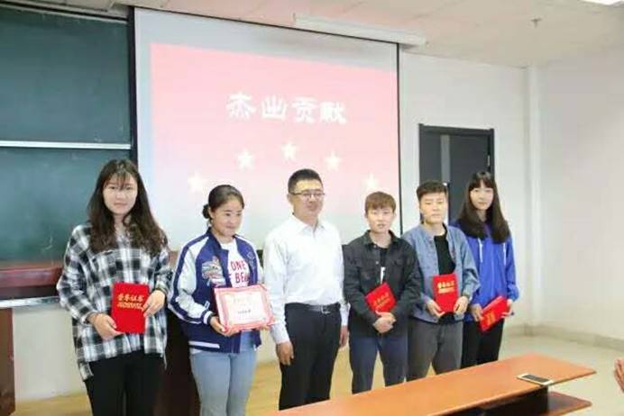 在第四十四届校运动会上,我院共派出50名运动员参赛,经过顽强地拼搏,我院获得了女子团体第四、团体总分第八的好成绩,并获得了精神文明奖。优异成绩得益于全体运动员的奋力拼搏,得益于全院师生的支持配合,也离不开学生会各位成员的精心组织和热情服务。此次表彰大会专门设置了杰出贡献奖,以表彰在运动会中取得了优异成绩、为学院争光添彩的运动员们。姚华、春兰、刘玉杰、王芮、王雨婷五位运动员获此殊荣,党总支副书记吴栓虎老师为获奖同学颁发了荣誉证书。学院团总支书记兼学工办主任周琳娟老师主持表彰大会,本科生辅导员何澈丽牧歌老师参会。