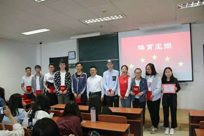 除了为学院成绩做出突出贡献的运动员们,大会还专门为在运动会中显示出顽强拼搏的竞赛精神、积极参与的体育精神的运动员设置了体育风尚奖。王欣、徐珊珊、王璐等十名运动员获奖。大会还特别肯定和表彰了在此次运动会中辛勤奉献的工作人员。