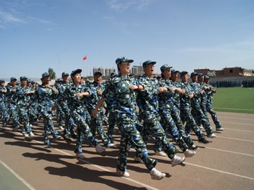 七天的军训中,尽管烈阳高照,但学院工作人员始终陪伴在参训学生身边,为同学们进行全天侯的服务,给同学们提供服务和帮助,解决他们在军训中遇到的问题,缓解他们的压力,做他们最坚强的后盾,使他们拿出全部的激情和斗志来迎接军训的挑战。同学们也没有辜负众人的期望,发扬了不怕苦、不怕累、顽强拼搏、力争上游的精神,与教官密切配合,听从教官指挥,训练过程中一丝不苟,全神贯注地做好每个动作,力求达到整齐划一,用汗水在田径场上书写着他们无悔的青春。