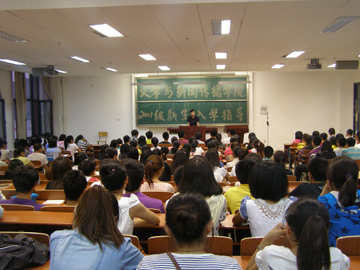 老师首先代表学院向考取我院的2011级学生表示热烈的欢迎和祝贺。第一场讲座,