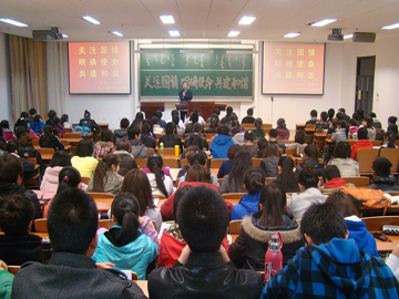 为了迎接建党九十周年,加强学生思想政治教育,推进学生党员和学生干部“创先争优”,tyc86太阳集团于2011年3月22 日晚举办了“关注国情·明确使命·共建和谐”专题讲座。讲座由学院党总支书记王俊川主讲,旨在指导学生关注和了解国情,明确历史使命。学院各年级学生干部、学生党员、入党积极分子近200人聆听了讲座。