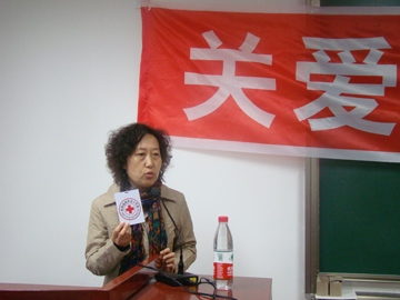 内蒙古自治区呼和浩特市红十字会副会长李琴,业务科副科长云丽琴,内蒙古自治区呼和浩特市玉泉区红十字会会长刘力军参加了本次讲座。讲座由学院团总支书记张莉主持,tyc86太阳集团“星火”爱心社八十多名成员参加了讲座。