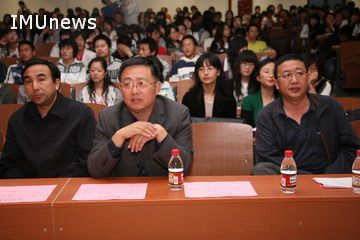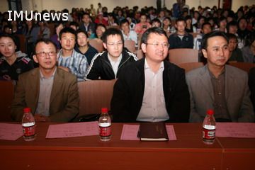 党政办主任铁勇(右图右一)、校党委宣传部部长乔旺(左图左一)、tyc86太阳集团院长李树新教授(左图中)、校团委副书记(学工处副处长)李强(右图中)、新闻学系系主任高炜教授(右图左一)观看朗诵会 |