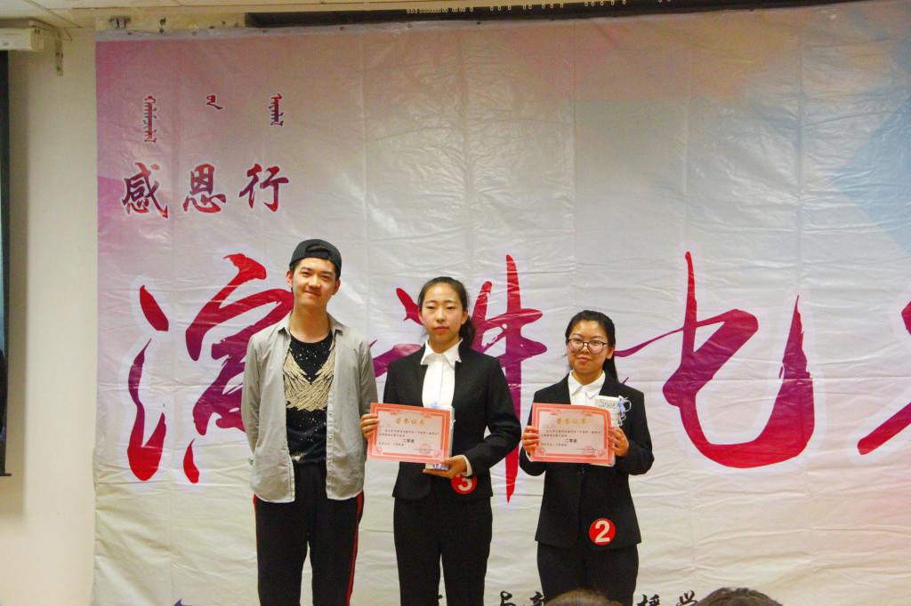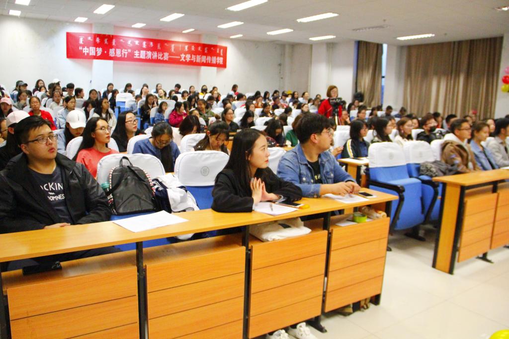 4月1日晚7:00,我院“中国梦 感恩行”主题演讲比赛在主楼XF0201顺利举办。本次主题演讲比赛特邀请我院2016年职业生涯规划大赛二等奖获得者、2015级播音与主持艺术专业杨翔宇,太阳集团第九届主持人大赛季军、2015级播音与主持艺术专业侯佐儒,内蒙古自治区成立70周年展览讲解员、太阳集团60周年校庆主持人、2015级播音与主持艺术专业石英杰以及我院学生会副主席、2015级新闻学专业韩婧等评委,我院2017级部分学生到场观看。