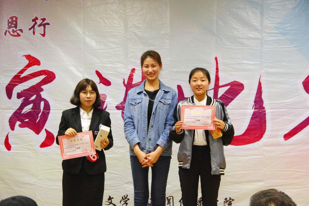 最终,2017级新闻学专业的杨野同学赢得了本次比赛的冠军,2017级汉语国际教育专业的王媛、2017级汉语国际教育专业的李佳琪同学荣获二等奖,2017级汉语言文学专业的孙佳茹、2017级编辑出版学专业的谭欣彦同学荣获三等奖,2016级汉语言文学专业的邢鑫媛、2016级汉语国际教育专业的张淼同学获得优秀奖。