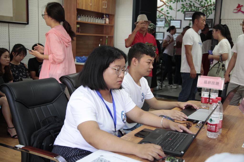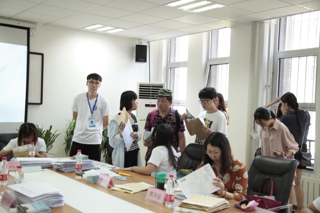 同时,在艺术楼会议室,新生注册报到工作有条不紊地开展。室内报到处的工作人员负责登记新生个人信息,收取审核档案,下发体检表和校园卡等必需物品,并向新生细心讲解需要注意的细节。领导老师及2018级各班班主任与学生家长亲切交谈,耐心地解答学生家长的问题。