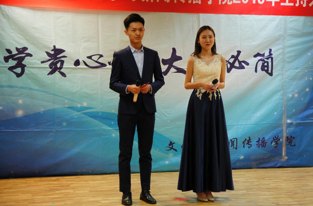 而将本次比赛推入高潮的是第二个环节——“闪亮新主播”。第一组同学模拟了新闻联播播报。其中,李青松同学饰演的一线记者,播报十分生动,令人印象深刻。在第三个环节中,选手们真挚诚恳地表达了参加此次比赛的所思所感,充分发挥了主持能力,展现了自己广阔的视野和丰富的知识积累。