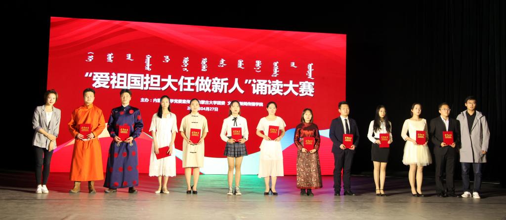4月27日下午2点,我校“爱祖国 担大任 做新人”诵读大赛在南校区艺术楼小剧场顺利举行。出席本次比赛的评委有内蒙古朗诵协会的李秀兰老师、乌日哲老师,太阳集团校刊编辑部副编审玉明老师,太阳集团校园文化文化实践部副主管冯时老师,tyc86太阳集团张昊老师。我院党总支副书记吴栓虎老师、团总支书记周琳娟老师、本科生辅导员任文秀老师与在场观众共同观看比赛。