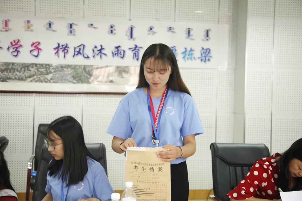 同时,在艺术楼会议室,新生注册报到工作有条不紊地开展。室内报到处的工作人员负责登记新生个人信息,收取审核档案,下发体检表和银校卡等物品,并向新生细心讲解需要注意的细节。领导老师及2019级各班班主任与学生家长热情交流,耐心地解答学生家长的问题。