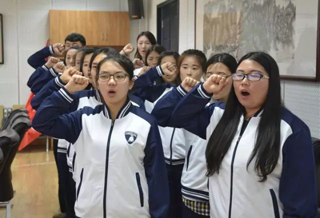 议程第一项,副院长吴栓虎为运动员代表授旗,他郑重地将院旗交到运动员代表阿拉坦巴根手中,希望运动员们能在比赛中为我院争得荣誉。