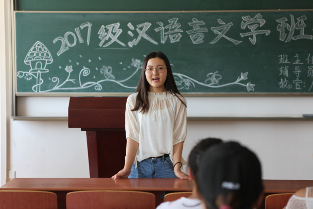 各班班主任对各位同学来到tyc86太阳集团就读表示祝贺与欢迎,并希望他们能在这个新集体中享受美好的四年时光。2017级汉语言文学班主任赵乐老师以PPT的形式全面细致地对新生进行了引导与教诲;2017级汉语国际教育学班主任付建荣老师则对学生安全问题进行了着重说明;2017级播音与主持艺术学班主任许晋老师鼓励同学们在保持自身专业优势的同时向内挖掘。班主任还指导学生加入易班网班群,并强调了军训期间的注意事项。