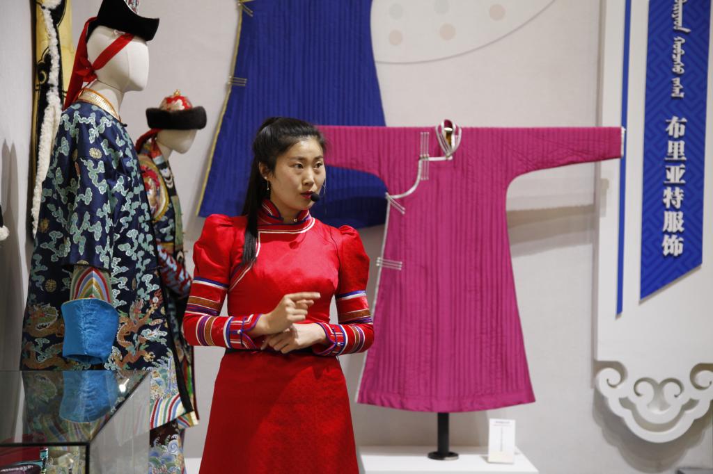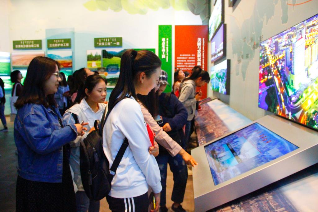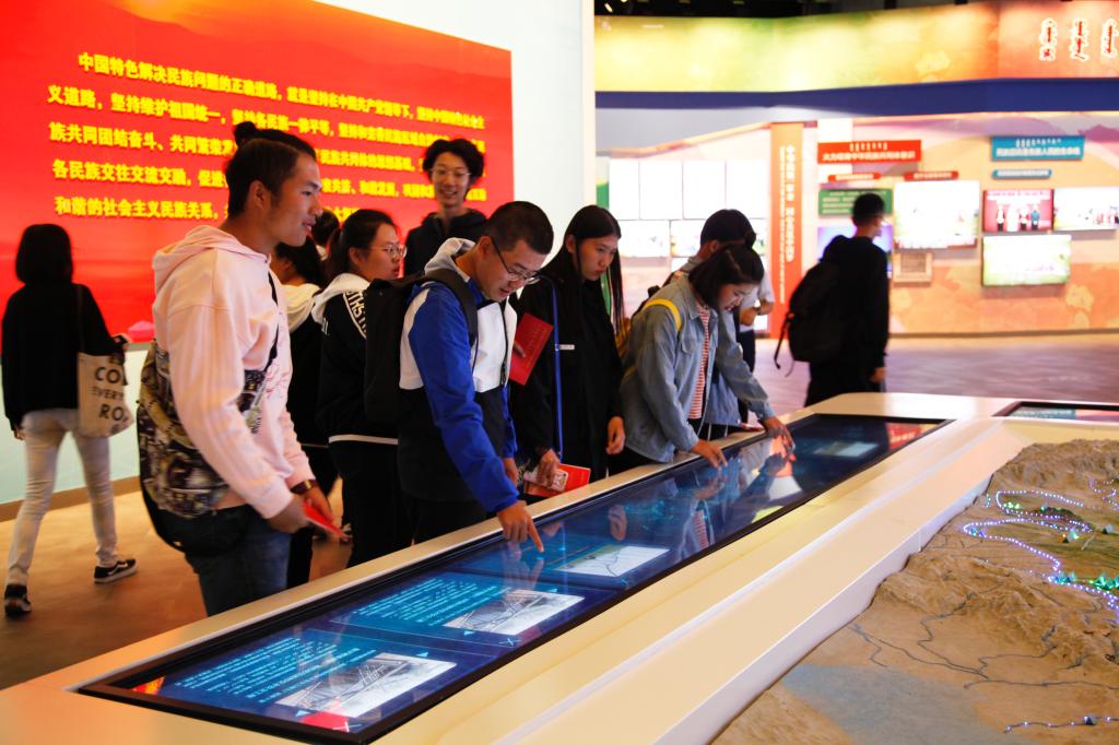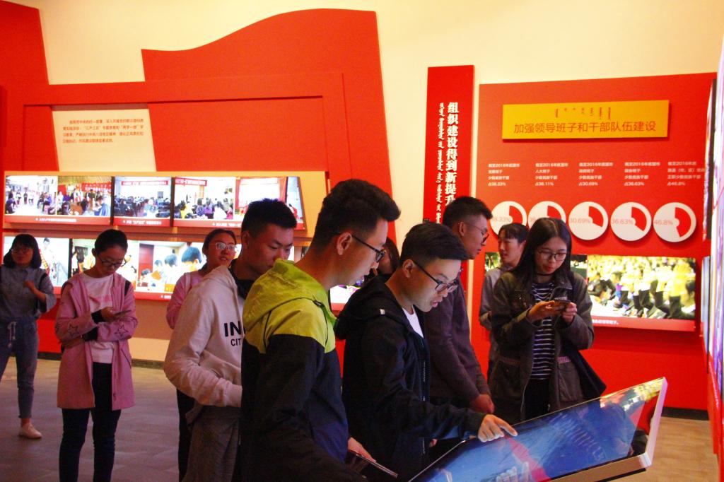 展览馆专业讲解员极具感染力的讲解,让同学们对草原文化增添了更加深刻的理解和感悟。在参观展览的过程中,新生们一边聆听讲解,一边积极地参与到互动中来,尝试和体验了许多融汇传统艺术和现代技术手段的新型高科技产品,如全景投影、VR观看项目。参观结束后,新生们用热烈的掌声表达了对讲解员的感谢以及参与本次主题教育活动的激动心情。