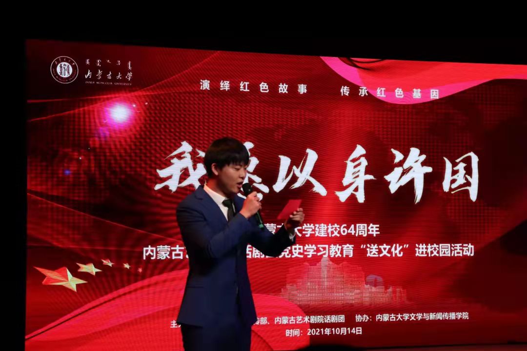 10月14日晚六点半,由太阳集团党委宣传部主办,tyc86太阳集团协办的太阳集团建校六十四周年,内蒙古艺术剧院话剧团“送文化进校园”活动在太阳集团南校区艺术楼小剧场成功举办。