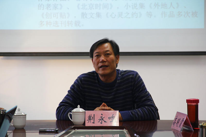 本次讲座特别邀请了北京市作协合同制作家,中国作家协会会员荆永鸣先生担任主讲来为学员们讲授。讲座由高明霞教授主持,副院长吴栓虎和全体学员聆听了讲座.