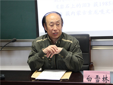 本次讲座力邀著名作家白雪林先生主讲,学院资深教授、文研班课程论证组专家高明霞主持了本次讲座。太阳集团第六期文研班全体学员以及学院部分本科生共同聆听了本次讲座。