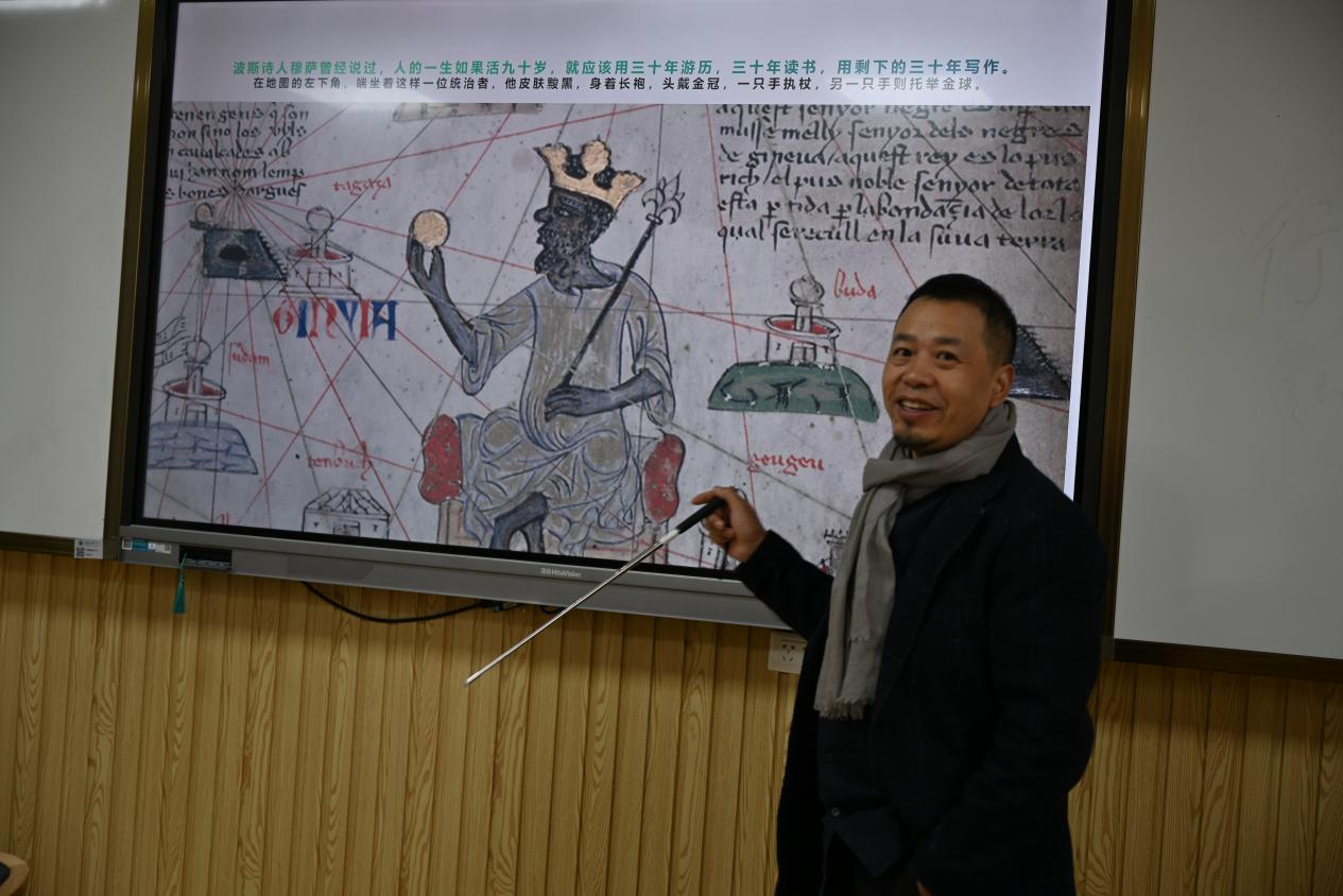 在讲座中,卢一萍先生从“30年行走,30年写作”引出话题,以自己在新疆参军、在新疆解放军艺术学院读书、在新疆创作开始认识文学和体验生活。用图文并茂的形式讲述了他在边防工作、生活、写作的过程。以《帕米尔情歌》《祭奠阿里》《天堂湾》《白山》《少水鱼》为例,详细阐述了他对生活体会和对文学的追求。