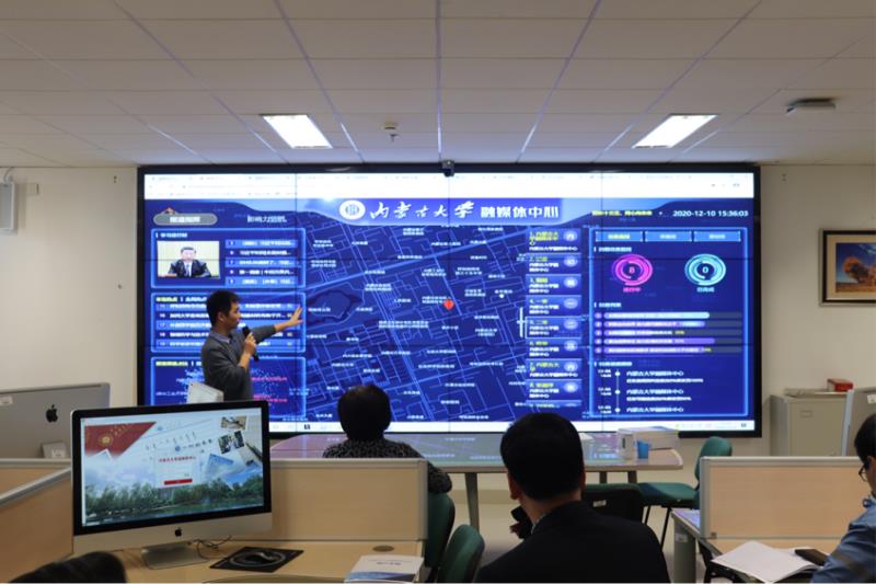 开发人员对融媒体平台建设方案目前规划建设的各类板块运用进行了详细的介绍,其中包括报道指挥大屏、舆情线索监测平台、选题策划平台、智能采编平台、传播分析平台、问政爆料平台、审核管理平台、权威供稿平台等。在听取功能介绍及演示后,专家组对项目现有功能进行充分的研究讨论,并结合专业发展需求和融媒体发展方向,探索最切合新闻系实验室需求的方案。