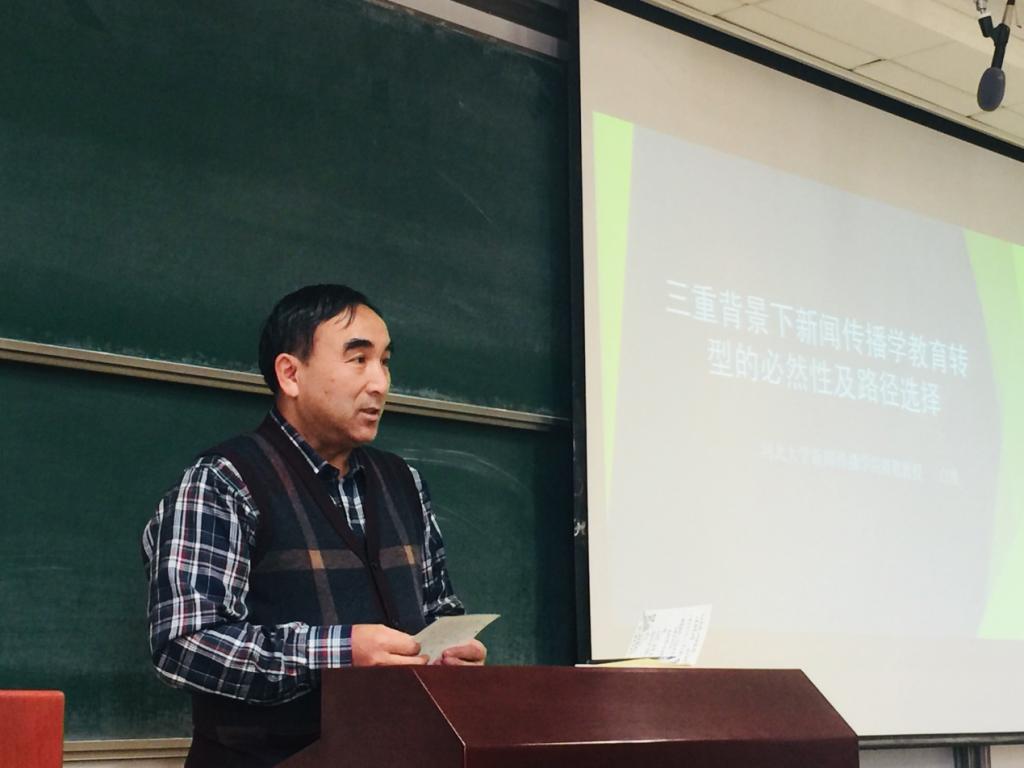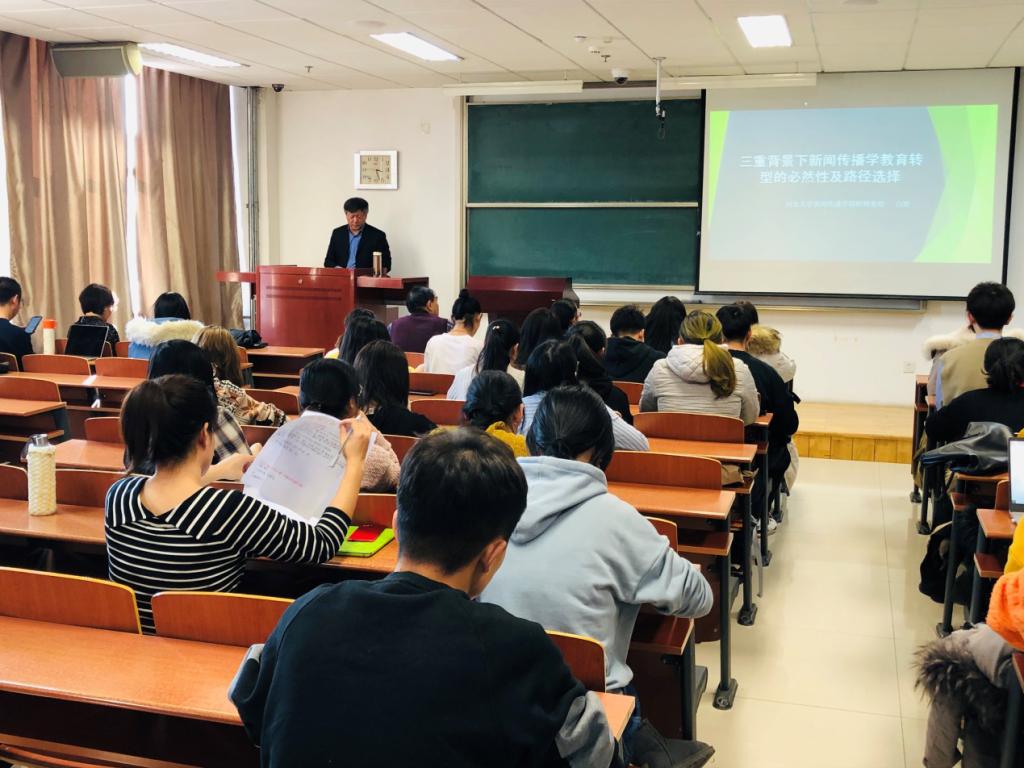 12月17日下午,我院邀请河北大学白贵教授进行学术交流并为师生做了题为《三重背景下新闻传播教育转型的必然性及路径选择》的学术讲座。讲座由党总支书记乔旺主持,副院长张丽萍教授,新闻系主任刘寒娥教授,新闻系部分教师及新闻专业研究生参加讲座。