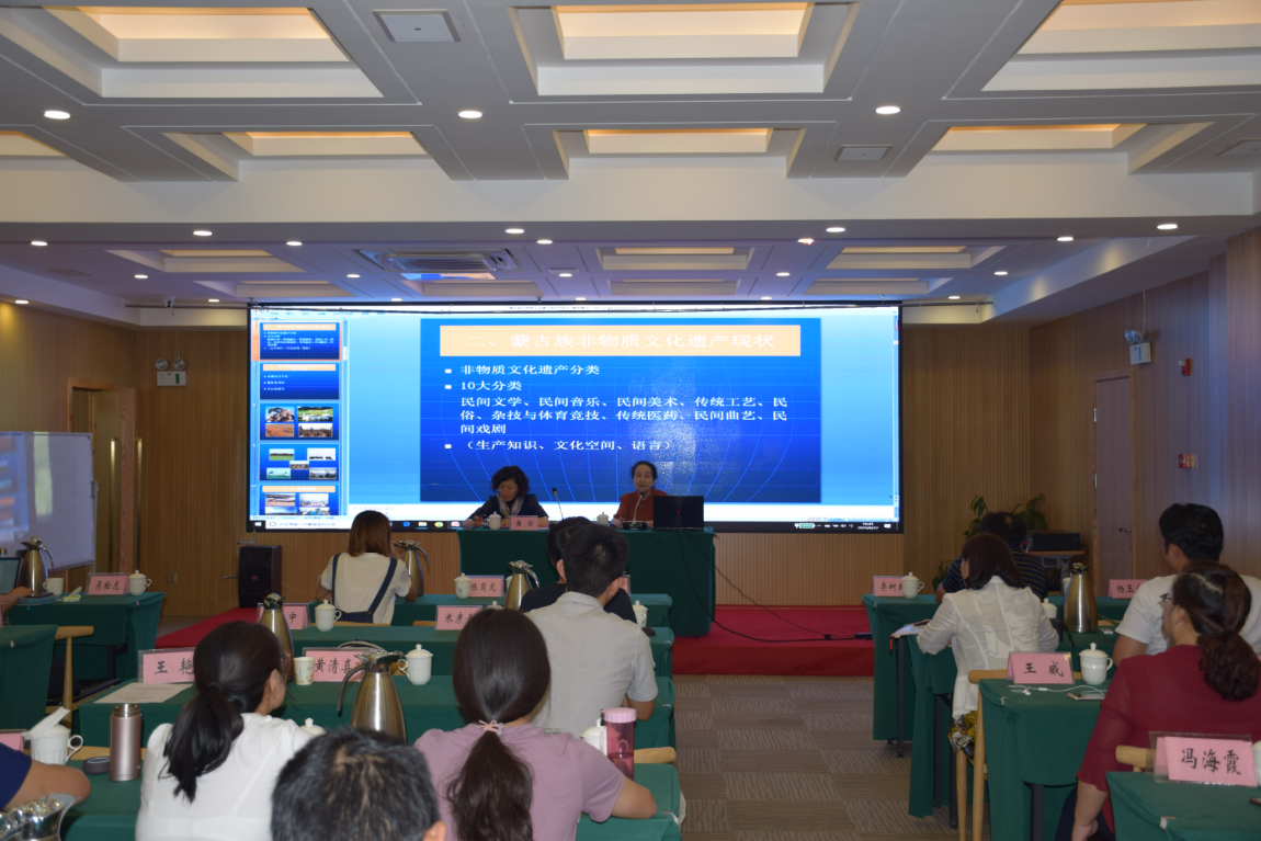 敖其教授题为“蒙古族非物质文化遗产保护的理论与实践”的专题讲座更是以图文并茂的方式,从饮食、服饰、音乐、舞蹈、手工艺品等多个方面,展示了蒙古族富厚的宝库般的非物质文化遗产,使得在场师生兴味盎然。