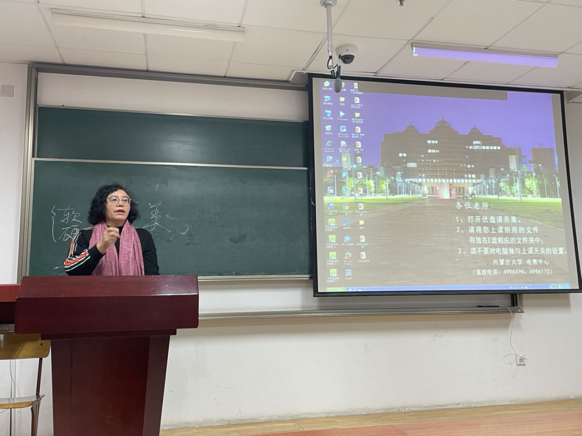 大赛分为展示和竞赛两个环节。展示环节中,学校第一届思政课程和课程思政教学技能大赛二等奖获得者赵延花教授从蒙汉语言文化交融的角度展示了文学课程中课程思政教学方法;自治区高等院校第十届青年教师教学技能大赛文科组一等奖获得者云韬老师主要展示了教学过程中创新互动的方式,为青年教师的教学技能提升做了优秀示范。竞赛环节中,青年教师们或细致入微地分析文人作品中的爱国情怀,或风趣幽默地梳理作品风格形成的影响因素,或严谨密实地离析“星丛”概念,或联系当下解析专业概念与问题,虽然各位老师的教学风格不一,但都充分体现了知识与热情的碰撞,淋漓展现了青年教师应有的风貌。